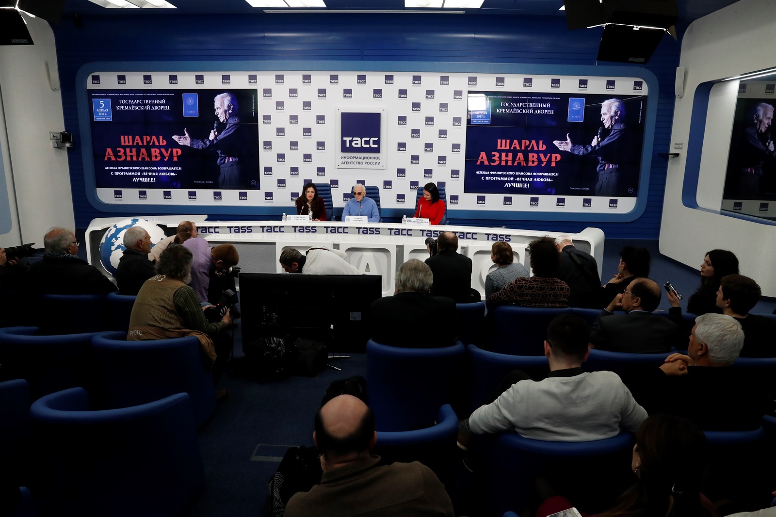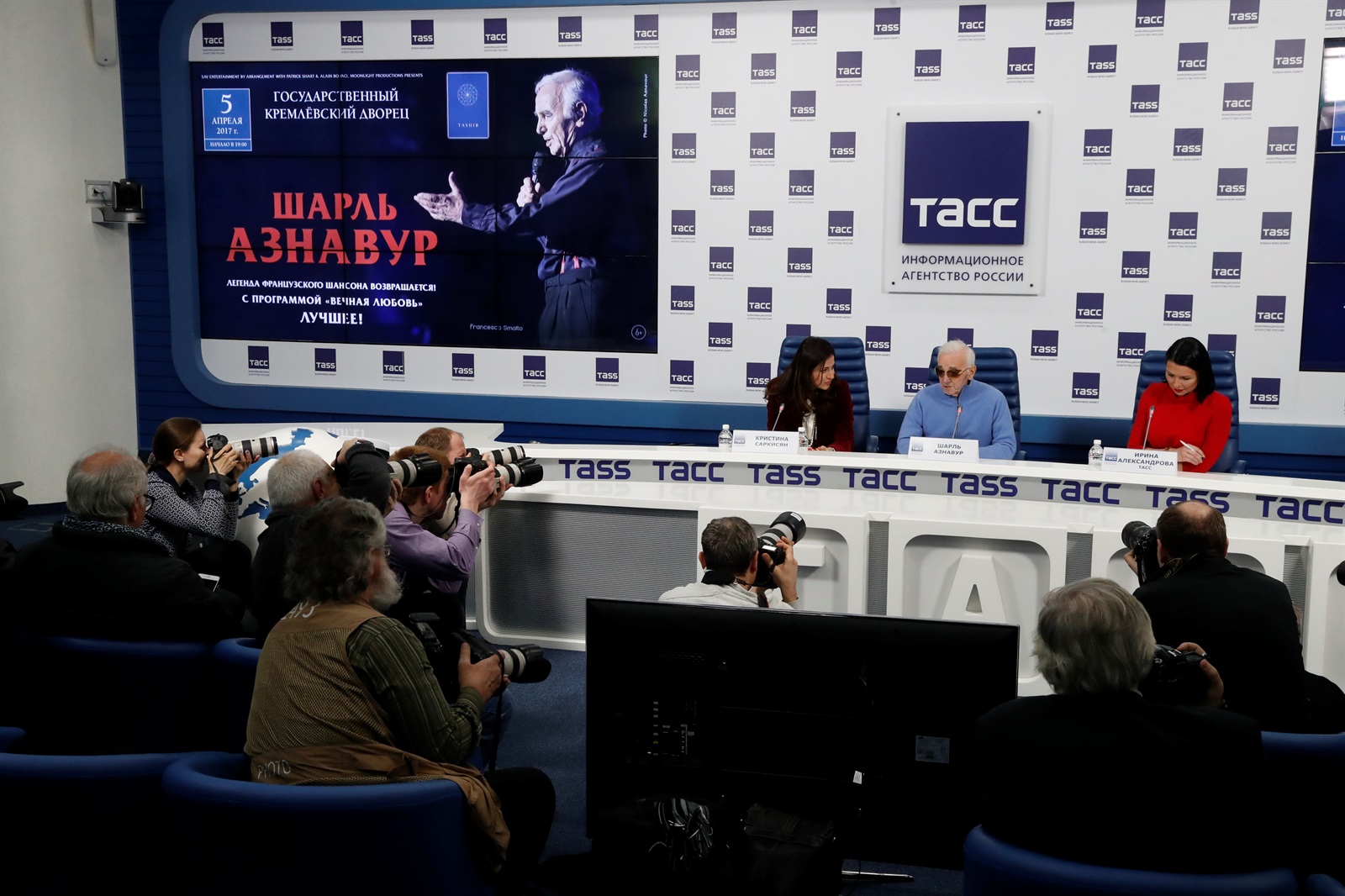 В преддверии своего единственного концерта в России 5 апреля в Кремлевском дворце великий шансонье Шарль Азнавур провел пресс-конференцию, на которой поделился творческими планами и пообещал сюрприз гостям своего концерта в Москве.