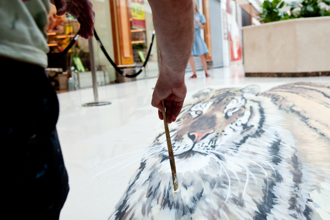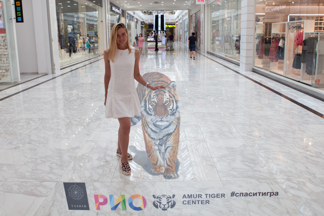 С конца июля и весь август под девизом «Спаси тигра» (#спаситигра) в популярных торговых центрах Москвы были размещены трехмерные реалистичные рисунки животных, создающие ощущение присутствия хищника среди посетителей. Объемные изображения амурского тигра появились в ряде торгово-развлекательных центрах «РИО» и Avenue South West.