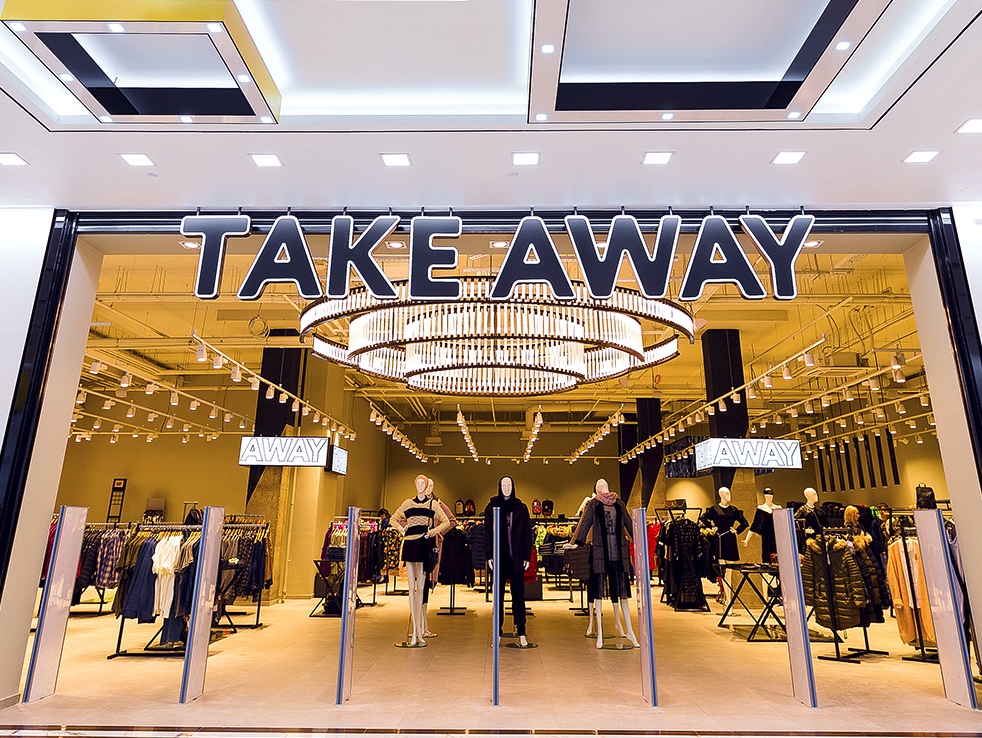 Take Away представляет собой современный формат магазинов, объединяющих на едином открытом пространстве корнеры различных брендов одежды, обуви, аксессуаров для взрослых и детей. После успешного запуска первого универмага в торгово-развлекательном центре «РИО» в Румянцево в декабре 2015 года группа компаний «Ташир» приняла решение продолжить развитие проекта, сделав его сетевым.