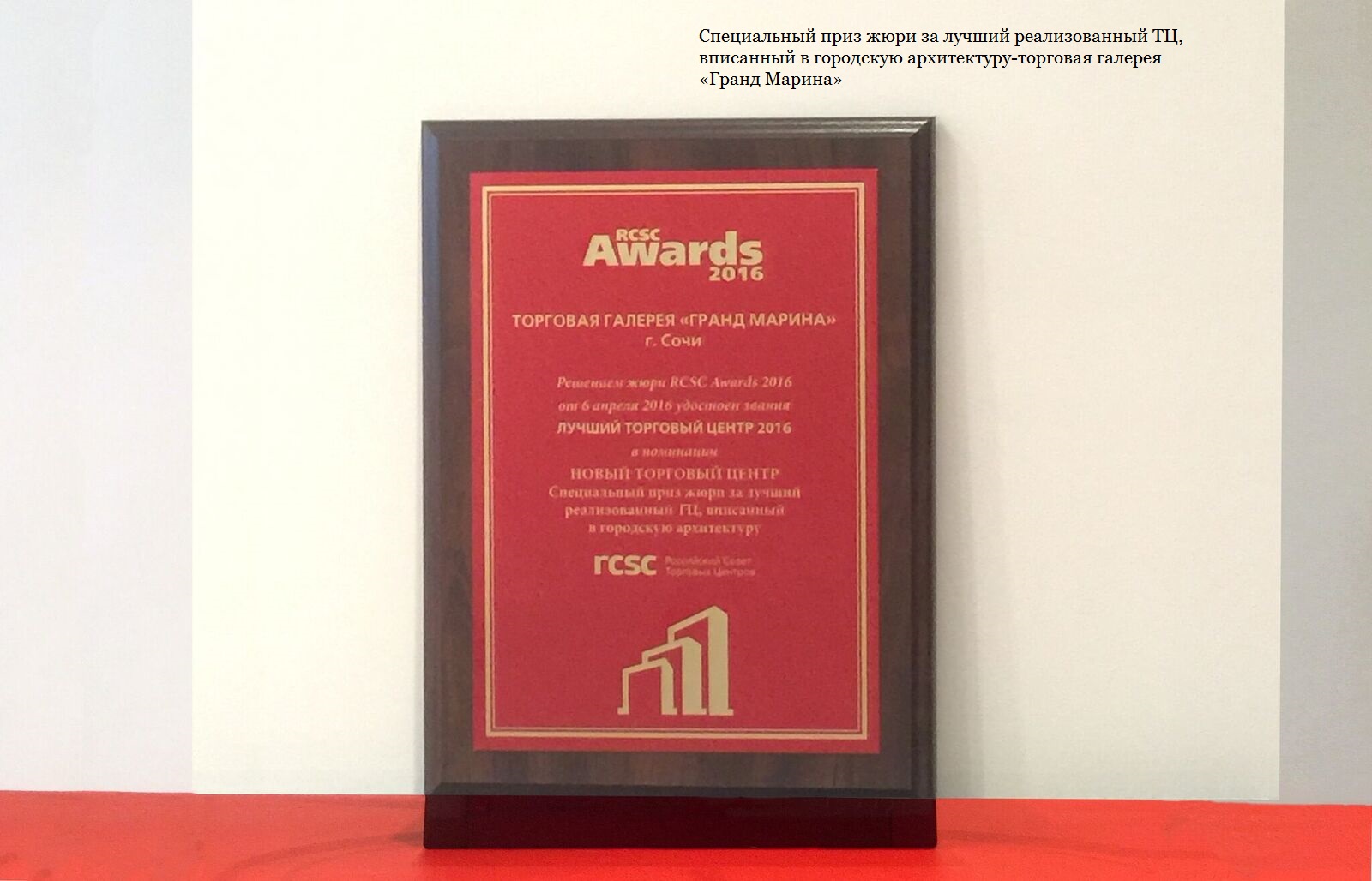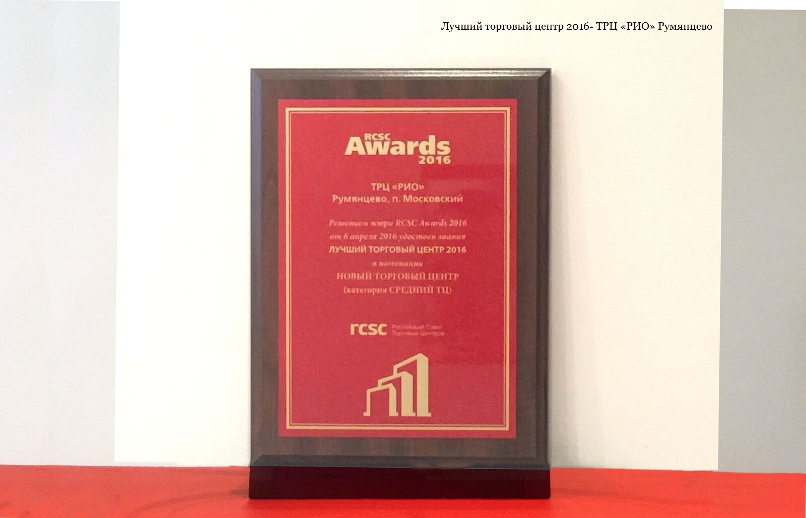 Торжественная церемония награждения победителей рейтинга состоялась 19 апреля и собрала более 200 лидеров отрасли. Экспертное жюри премии, в состав которого традиционно вошли профессионалы индустрии торговой недвижимости ― члены Российского Совета Торговых Центров ― отдали предпочтение торгово-развлекательному центру «РИО» Румянцево- как лучшему новому проекту ТРЦ в категории «средний», и специальный приз жюри за лучший реализованный ТЦ, вписанный в городскую архитектуру- торговой галерее «Гранд Марина», город Сочи.