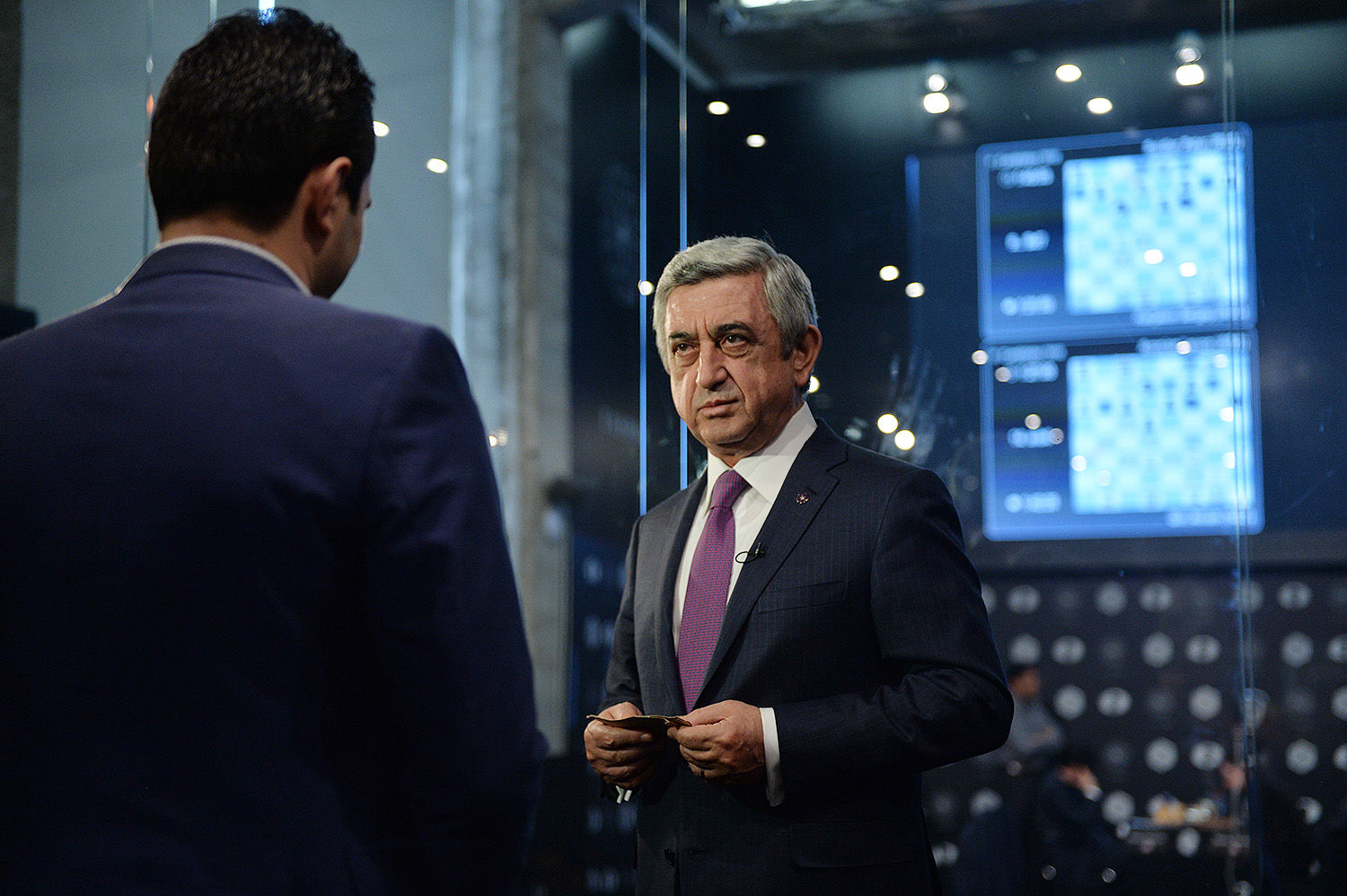 По окончании пресс-конференции гости мероприятия и журналисты перешли в игровой зал, где всё было готово к торжественной церемонии открытия. Президент Армении Серж Саргсян в сопровождении высоких гостей и организаторов турнира пожал руку каждому из шахматистов и сделал первый ход на доске гроссмейстера Левона Ароняна. После этого Турнир претендентов на звание чемпиона мира по шахматам 2016 был объявлен открытым.