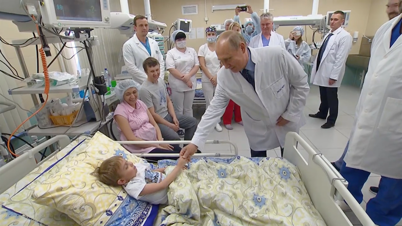 Президент России Владимир Путин осмотрел суперсовременное медицинское учреждение и пообщался с маленькими пациентами больницы.