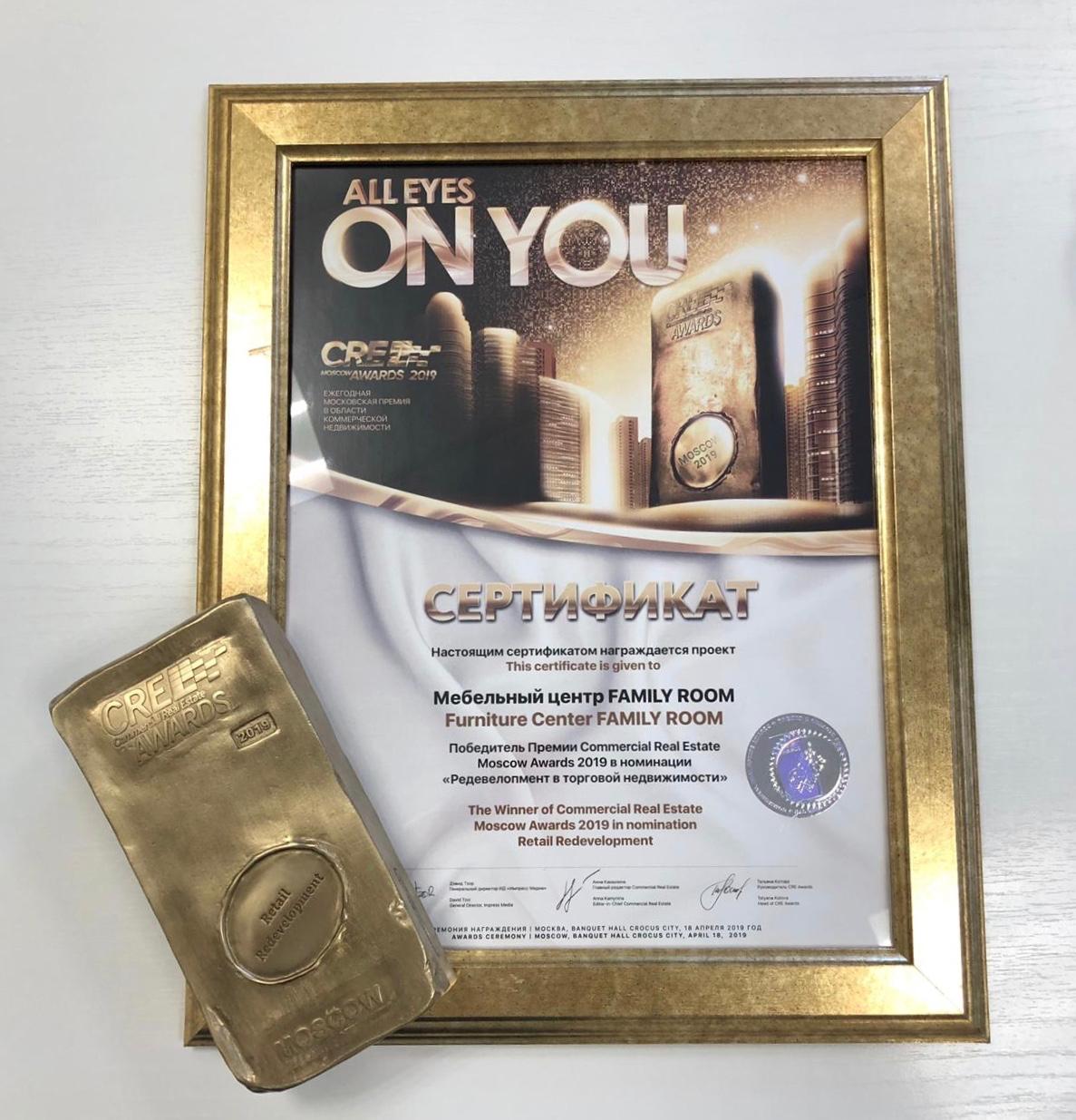 В номинации «Торговая недвижимость» московский мебельный центр группы компаний «Ташир» Family Room признан лучшим в категории «Редевелопмент».