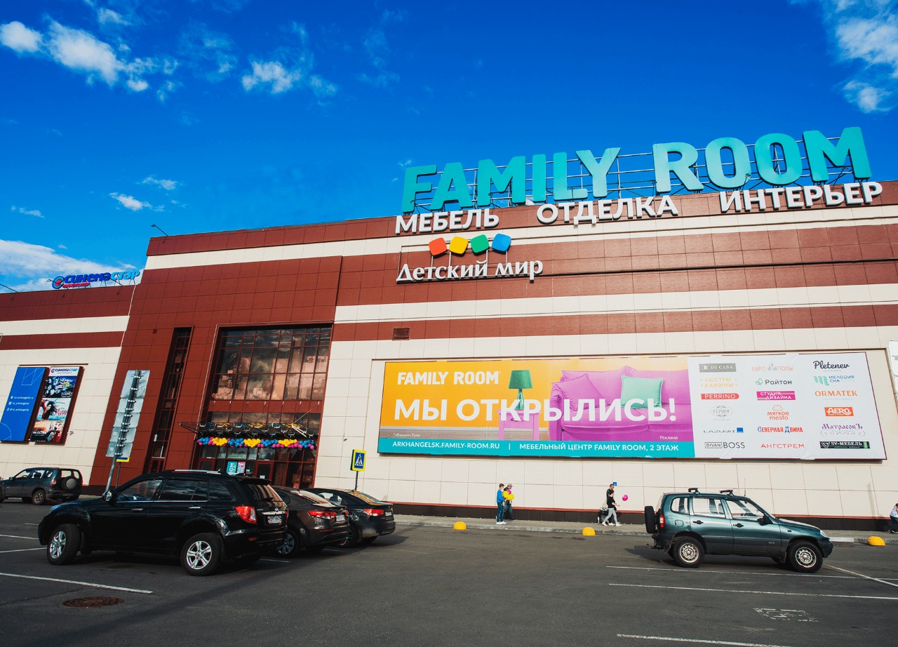 Family Room — это результат девелопмента торгового центра «РИО» в Архангельске. Общая площадь двухэтажного мебельного комплекса составляет 26 тысяч кв. м. Один из крупнейших в Архангельске центров, расположенный по адресу улица Розинга, 10, объединил в себе продукцию известных производителей мебели, товаров для дома и дизайнерских студий, которые представляют последние тренды на рынке интерьерного дизайна. Ассортимент Family Room представлен широким выбором товаров в разной ценовой категории. Среди арендаторов: Lazurit, «Орматек», «Ангстрем» и другие российские и международные бренды. На двух этажах комплекса расположены магазин продуктовой сети «Макси», кинотеатр сети «Синема Стар», магазин бытовой, цифровой и компьютерной техники DNS, магазин детских товаров «Детский мир» и зона фудкорта. Для удобства посетителей на автомобилях предусмотрена бесплатная парковка на 500 машиномест.