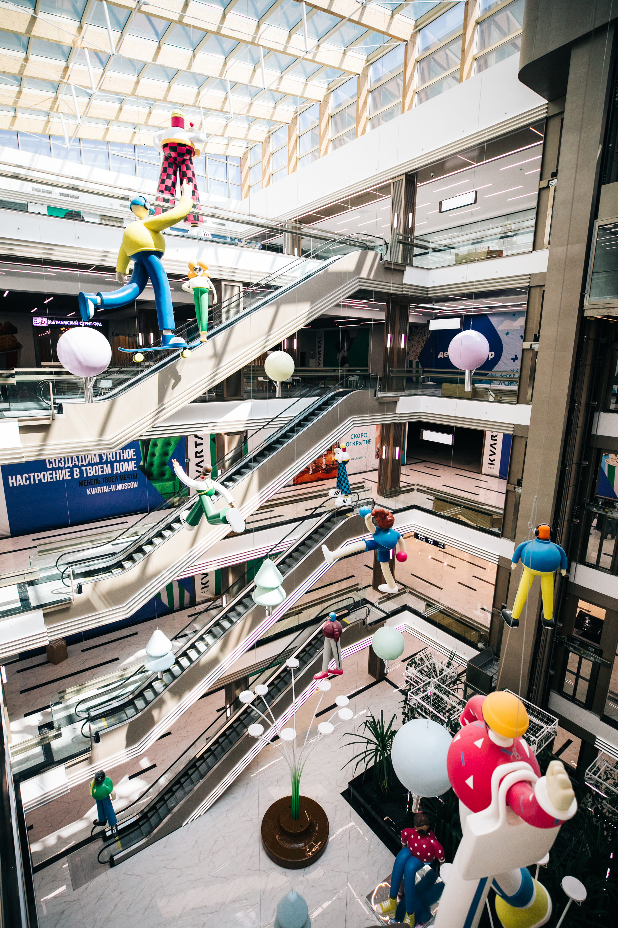 На шести этажах торгового центра расположились магазины международных и российских ритейловых сетей (H&M, «Детский мир», «Эльдорадо», Gloria Jeans, Rendez-Vous и другие), продовольственные магазины («Перекресток»), кинотеатр («Синема Стар» — первый в Москве мультиплекс Dolby Atmos, оснащенный акустическими системами Dolby), фитнес-центр (World Class), рестораны (Seasons, «Урюк», #Farш и другие) и зона фуд-корта (МсDonald’s, KFC, BurgerKing и другие), сервисы бытовых услуг, банковские отделения и салоны связи.